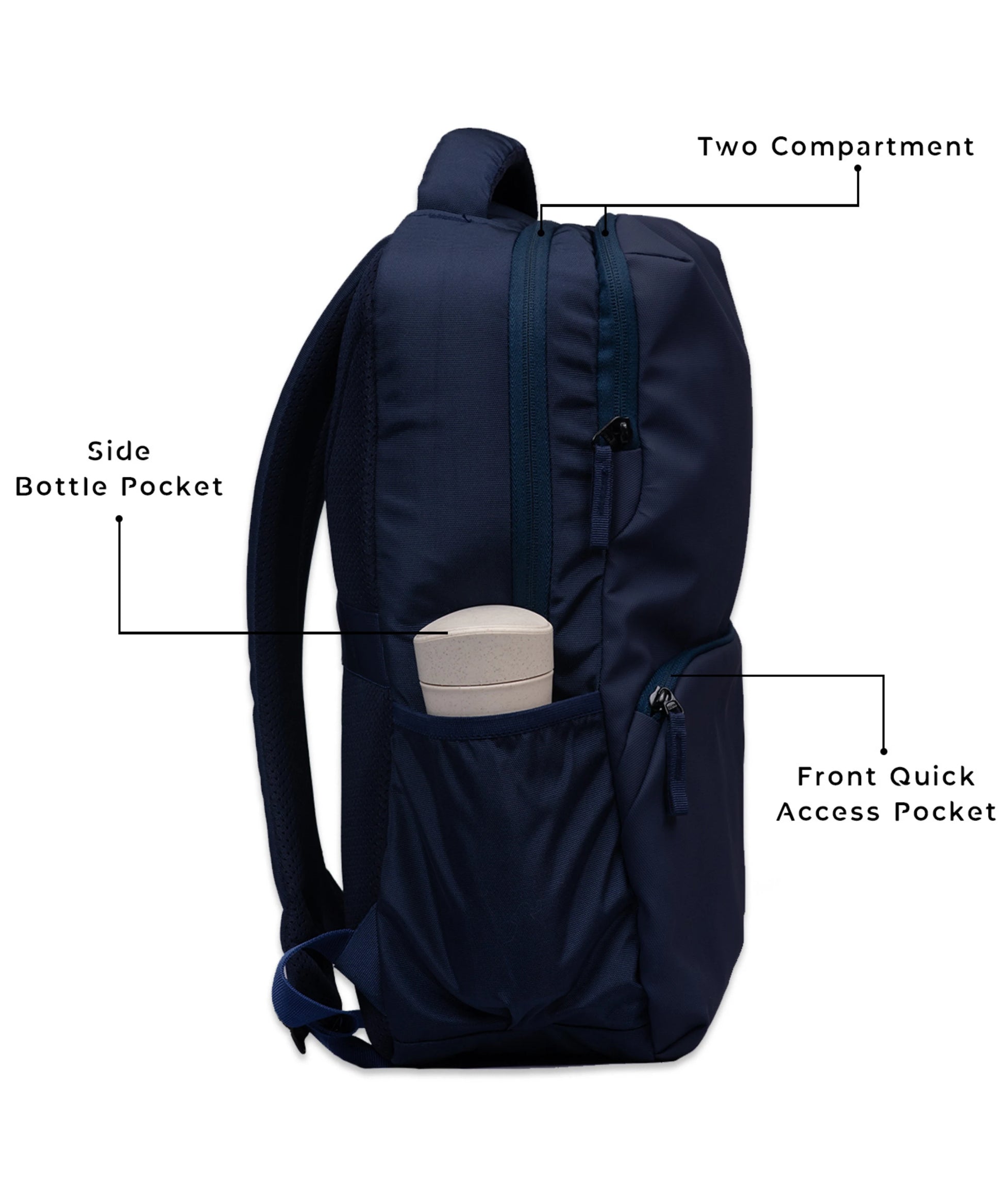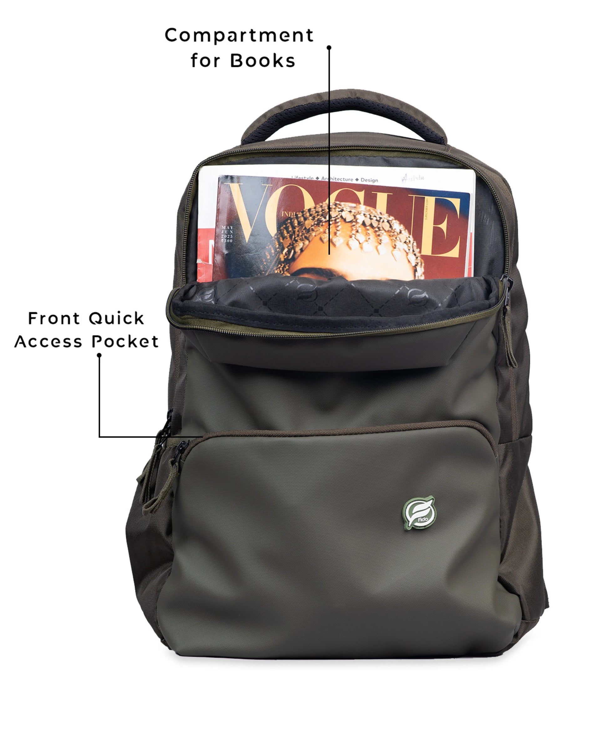 Easily reach essentials with a quick-access pocket and dedicated book compartment.
