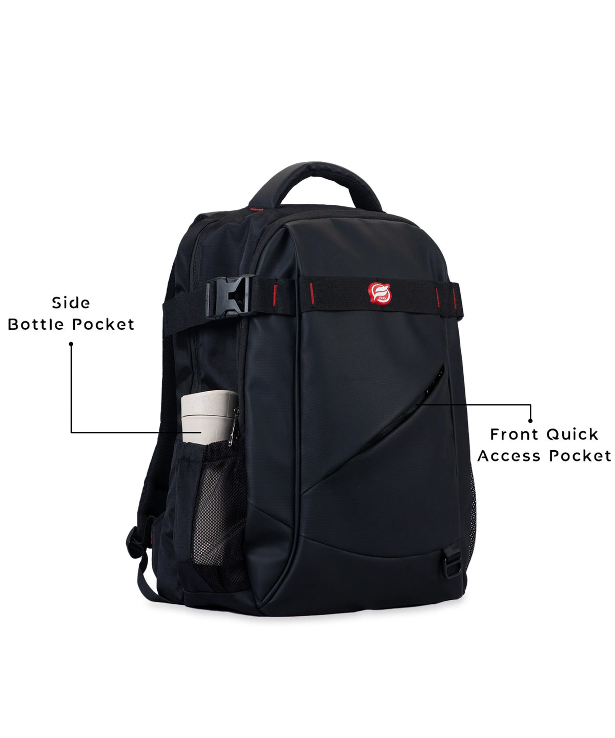 Smart Organization: Front quick-access zip pocket, dual side bottle holders, and a hidden anti-theft back pocket keep essentials secure and within reach